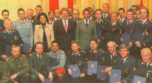 K?rntner Feuerwehrm?nner, Helfer des Roten Kreuzes und Soldaten des Bundesheeres wurden am Freitag, dem 15.11.02 f?r Ihren Einsatz in den Hochwassergebieten in Salzburg, Ober- und Nieder?sterreich geehrt! Ausgezeichnet wurden auch drei Thalsdorfer Feuerwehrleute!