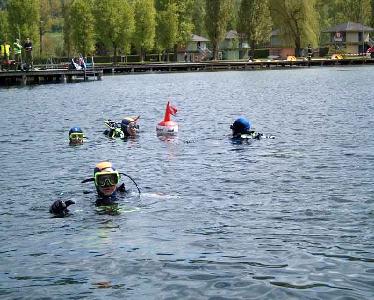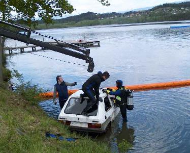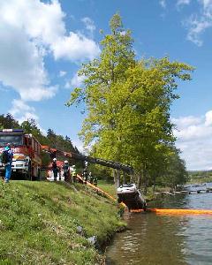 �bungsbestand war es, einen von der Fahrbahn abgekommenen, im L�ngsee versunkenen PKW zu bergen. Die Fahrzeuginsassen konnten sich eigenst�ndig in Sicherheit bringen. Man nahm an, dass der PKW am Motor stark besch�digt war und �l verlor. Die rund 50 Florianij�nger meisterten die �bung bravour�s. W�hrend vier Einsatztaucher den Bergungsballon an dem versunkenen Fahrzeug befestigten und es somit "transportf�hig" machten, gelang es den Kollegen mit Hilfe von Motorbooten den �lteppich einzugrenzen. Als n�chster Schritt wurde der verungl�ckte PKW ans Ufer gezogen, wo schon der Bergungskran bereit stand. "Dank regelm��iger �bungen gewinnen wir Routine, und das ist f�r den Ernstfall sehr wichig", kommentiert Bezirkswasserdienstbeauftragter Werner Kropiunig. "Wir danken allen Personen die es erm�glichen solche �bungen durchzuf�hren". Zur Risikobereitschaft war Bezirksarzt Dr. Otto Lichtenegger vor Ort. Einsatzleiter Robert Pichler, Kommandant der FF-Thalsdorf war mit dem Ablauf der �bung sehr zufrieden.